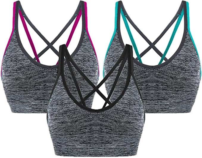 These next sports bras I feel have the most support. They also have removable pads and are a razorback style. They are very breathable and comfortable. I grab these the most when going to workout. They have 5 bras for $31 or 3 for $23! Sizes range from S-3XL.